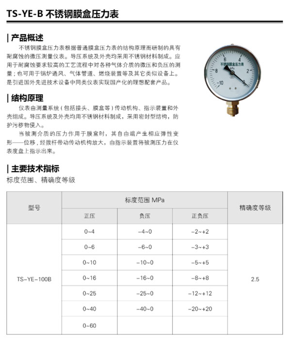 TS-VE-B 不锈钢膜盒压力表