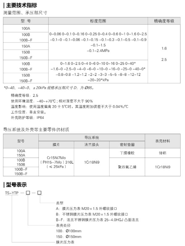 TS-YTP 系列膜片压力表