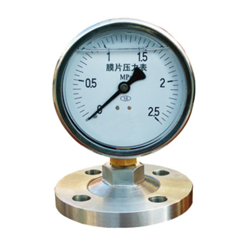 膜片压力表适用于测量有一定腐蚀性、粘稠介质和非结晶或非凝固的各种流体介质的压力或负压。可根据测量介质对耐腐蚀性能的不同要求而选用不同材料的膜片。外壳用不锈钢材料的仪表,可在工作环境较恶劣的情况下使用。
