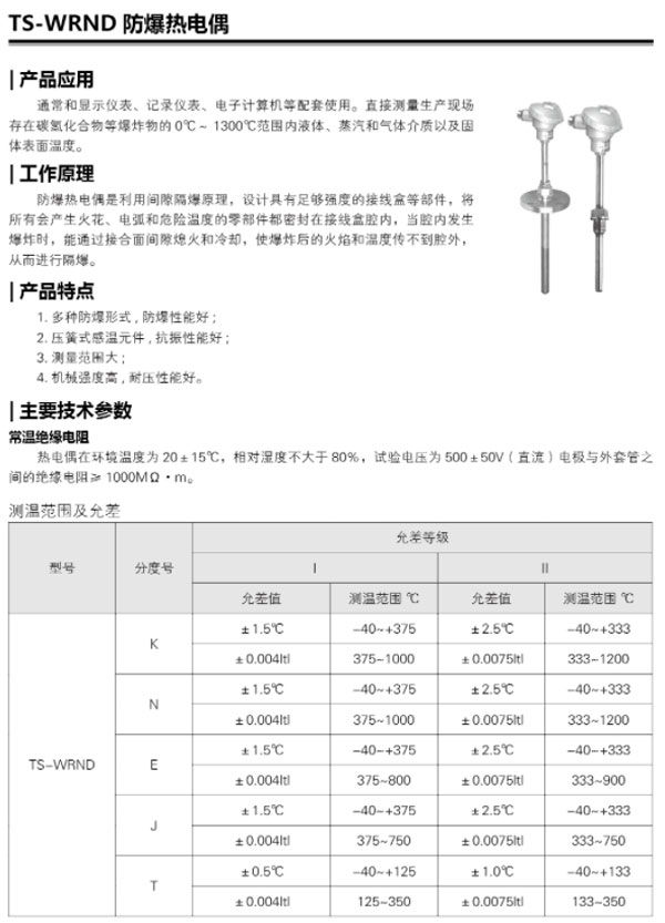 通常和显示仪表、记录仪表、电子计算机等配套使用。直接测量生产现场存在碳氢化合物等爆炸物的 0℃~1300℃范围内液体、蒸汽和气体介质以及固体表面温度。